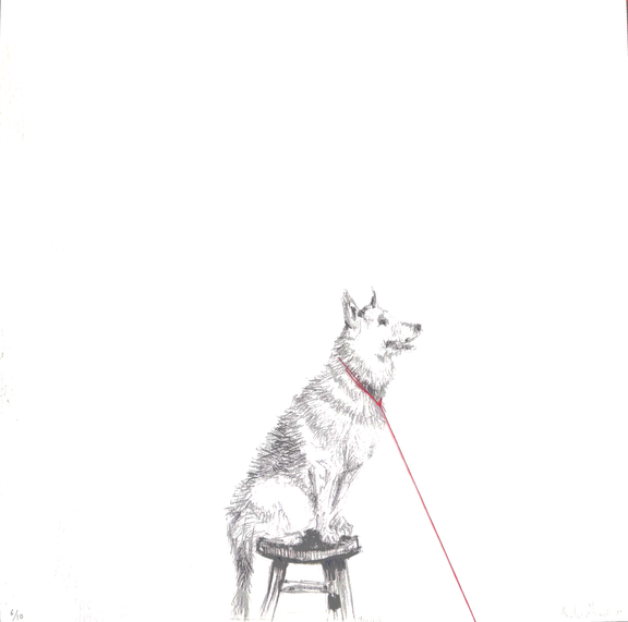 - Obra gráfica intervenida con hilo rojo